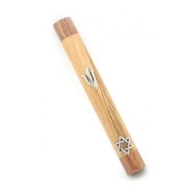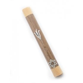 Light Brown Wood Mezuzah Case - Shin and Colored Breastplate in Silver Pewter$18.62 - $23.30 -