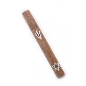 Two Tone Brown Wood Mezuzah Case – Silver Pewter Flame Shin and Star of David$18.62 - $23.30 -
