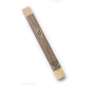 Two Tone Brown Wood Mezuzah Case with Shin and Menorah in Gold Pewter$18.62 - $23.30 -