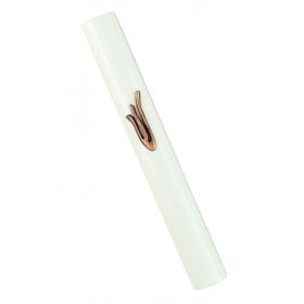 White Wood Rounded Mezuzah Case, Flame Image Shin in Gold Pewter$15.12 - $17.46