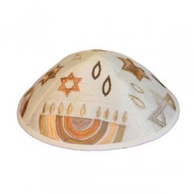 Yair Emanuel Kippah, Embroidered Hanukkiah, Star of David and Flame - Gold$15.05 -