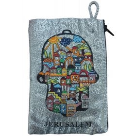 Embroidered Jerusalem Fabric Purse-Wallet - Glittery Hamsa with Jerusalem Design$6.29 -