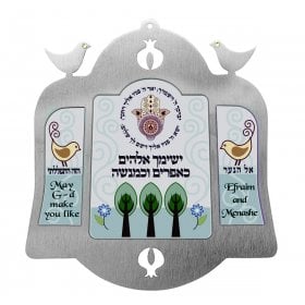 Enjoy the selection of Home or Business Blessings, with Hebrew or English text – many with pomegranate themes. There are elaborate Tablet-shaped impressive plaques or striking two or three window rectangle plaques.