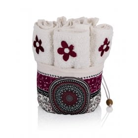 Dorit Judaica Six Flower Hand Washing Towels in Maroon Mandala Decorated Holder$46.76 -