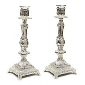 Sterling Silver Shabbat Candlesticks - Leaf Design on Hammered Background$839.99 -