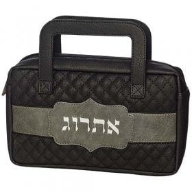 Black Faux Leather Etrog Holder Bag with Horizontal Gray Panel$34.29 -