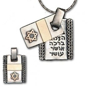 Another men’s jewelry item enjoying increasing popularity is dog tag pendants. Their rugged manly look is stylish and always in fashion, adding personality to whatever you wear. Express your loyalty to Israel’s Defense Forces, by choosing a dog tag engraved with the emblem of an army division or choose a tag with a traditional Jewish symbol - Menorah, Star of David, Chai or dove of peace.