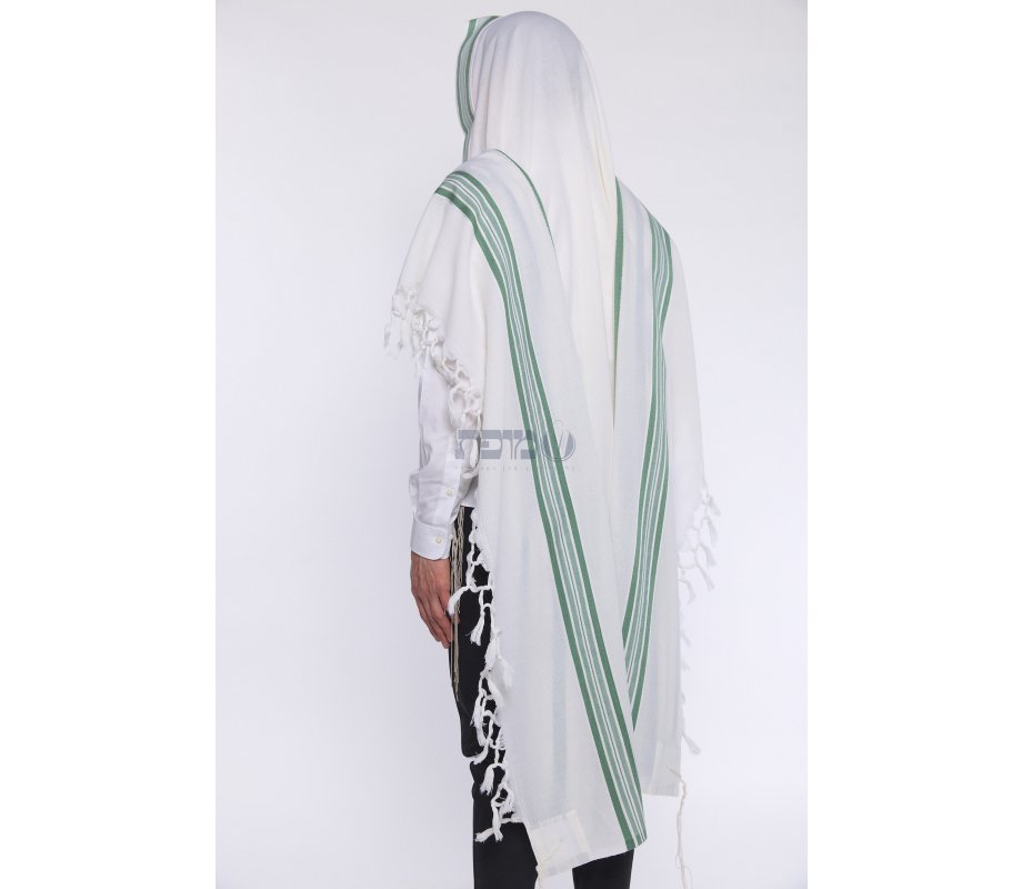 Hallel Wool Tallit Non Slip Prayer Shawl - Green Melange Stripes