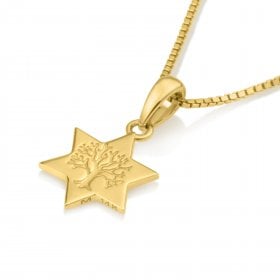 14K Gold Pendant Necklace - Star of David with Tree of Life Image in Center$204.11 - $396.88 -