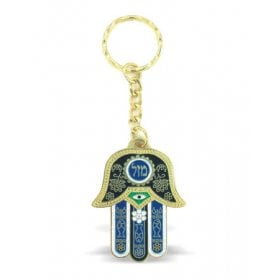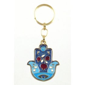 One can send a hamsa keychain to a loved one as a symbol for good luck and protection, great for someone before a big test or job interview! The enamel ones come in lively purple or blue-red colors and the twelve tribe colored stone ones have the Travelers prayer in Hebrew on the other side. The hamsa Judaic keychain is a quality two tone one with a central Hamsa and the word Jerusalem and is sent in an impressive gift box, for that special person.