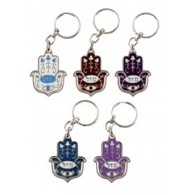 Colorful Hamsa Keychain, Mazak - Mazal in Hebrew with Good Luck Symbols$3.27 -