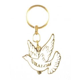 Gold Framed Metal Keychain - White Dove with "Shalom" in English$3.29 -