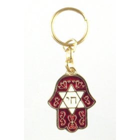 Hamsa Keychain with Hebrew Chai Star of David - Maroon$3.29 -
