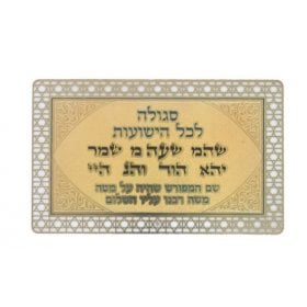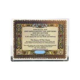 These unusual items are Blessings in different forms. The Hamsa Travelers Blessing with Besamim (fragrant spices) is a beautiful favor to present at festive occasions and can be used during the Havdalah ceremony. The white leather Brides Prayer booklet comes with an elegant white leather cover studded with crystals and contains a precious prayer for the bride on her wedding day. For handy business card sized blessings, the laminated cards come in many versions of prayers, in English, French, Spanish and Hebrew. You can choose from blessings for easy birth, traveler's prayer, amulets against the evil eye, success, good health and many more. The handsome framed items have a gold metal central design of Jerusalem with prayers in Russian, English and Hebrew and feature Jewish themes such as Menorah, Hamsa and Western Wall. the Hebrew Home Blessing clock will decorate your sideboard or end table as will the Mazal Tov photo album, where you will proudly be able to display pictures ornamentally.