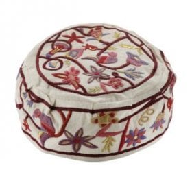 Yair Emanuel Embroidered Bucharian Hat-Kippah - Colorful Floral Design on Cream$20.12 -