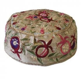 Yair Emanuel Embroidered Bucharian Hat-Kippah - Pomegranates on Off-whiteSize: 22" / 55.9 cm$19.79