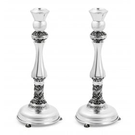 Sterling Silver Shabbat Candlesticks - Smooth with Single Floral Band$450.00 -