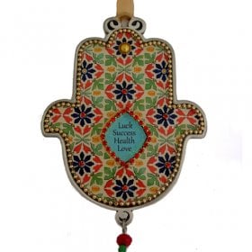 Iris Design Hamsa Wall Plaque, Beaded Roses and Birds – English Blessing Words$58.56 -