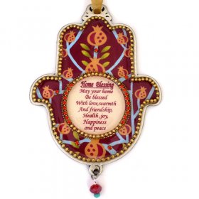 Iris Design Hamsa Wall Plaque, English Home Blessing - Maroon Open Pomegranates$58.56 -