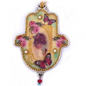 Iris Design Hamsa Wall Plaque, Young Girl with Beaded Roses and Butterflies$58.56 -