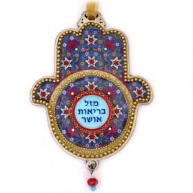 Iris Design, Hebrew Blessings on Hamsa Wall Plaque - Colorful Pop Art$65.20 -