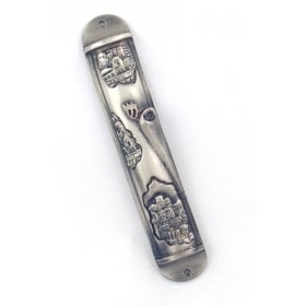 Pewter Plated Mezuzah Case, Wave Jerusalem Design - GraySize: 12 cm / 5"$25.05 -