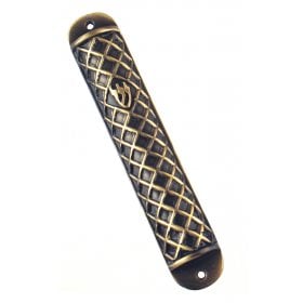 Wide Square Pewter Mezuzah Case – gold criss-cross DesignSize: 12 cm / 4.7"$36.74 -