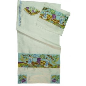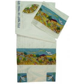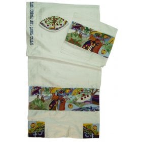 The stunning craftsmanship on Rikmat Elimelech Tallitot will leave you awed. There is the classic handloom woven Tallit in deep, rich colors in a quality weave of silk and wool for quality, durability and beauty. Then there are the silk printed Tallitot with Biblical themes depicted in lively animations, colors and designs, with matching Kippah and bag. Last but not least, the embroidered Tallits come in diverse shades and designs such as a leafy pomegranate branch, Menorah, or a picturesque City of David design for a meaningful and beautiful religious item.