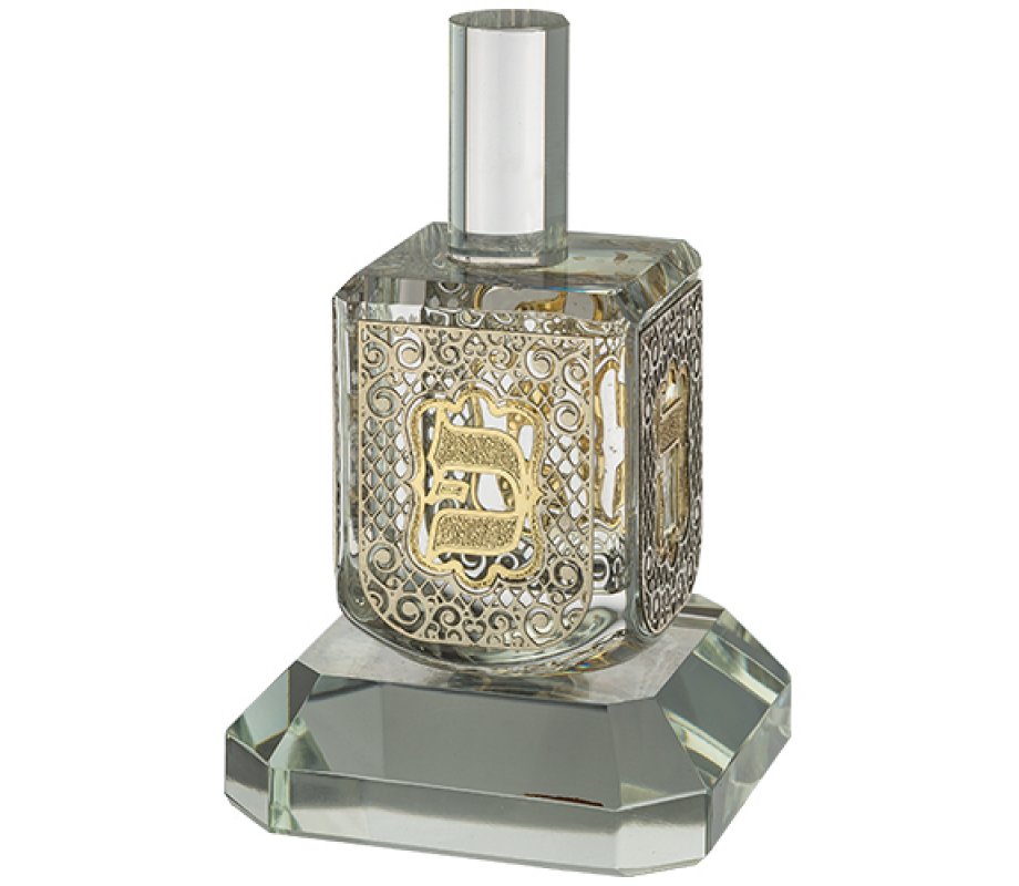 This exquisite silver color and metal Crystal Dreidel on a Glass Base combines modern elegance with timeless tradition. The dreidel features a sparkling crystal body accented with metal details, creating a refined appearance. Each side is etched with the Hebrew letters ๐ โ ไ ๔ Nes Gadol Hayah Poh (A great miracle happened here) symbolizing the miracle of Chanukah. Set on a sleek glass base, it serves as a stunning decorative piece or a meaningful gift, celebrating the beauty and spirit of the holiday in style.