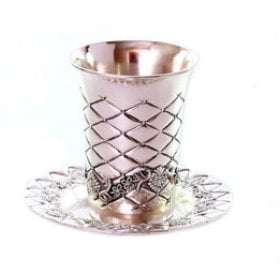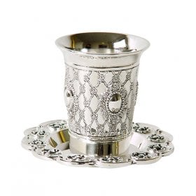 Silver Plated Kiddush Cup on Stem with Matching Plate - Diamond DesignHeight: 6"$26.72 -
