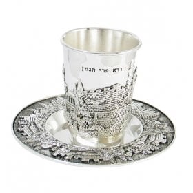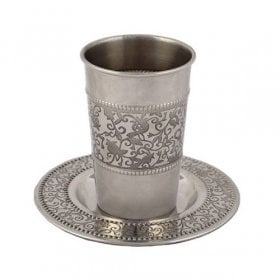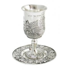 Nickel Plated Kiddush Cup and Matching Plate - Jerusalem DesignHeight: 3.5"$33.33 -