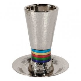 Yair Emanuel Hammered Nickel Kiddush Cup and Saucer - Colored ringsChoice of colors$47.47 -