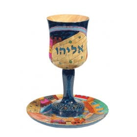 Yair Emanuel Hand Painted Wood Elijah Cup for Seder Night with Plate - Jerusalem5.7” X 5”$34.29 -