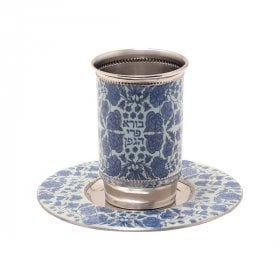 Kiddush Cup on Stem with Tray in Blue Armenian Design – Blessing WordsSize: 5.4" x 4.3"$34.97 -