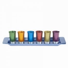 Yair Emanuel Six Anodized Aluminum Kiddush Cups and Tray – Metallic ColorsCup Height: 2.5" Choice of Colors$69.67 -