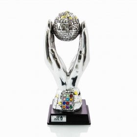 Hands Holding Jerusalem Globe on Wood Base - Silver Plate with Gold AccentsComes in 2 sizes$26.67 - $51.20 -