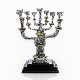 Silver Plated Decorative 7 Branch Menorah with Gold Accents on Wood Base - Not for Lighting$129.09 -