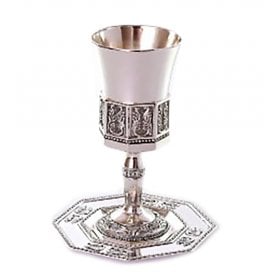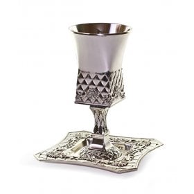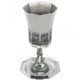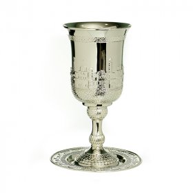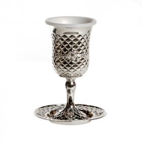 The aJudaica choice of Kiddush Cups are all beautifully designed and reasonably priced. There is silver plated, nickel, pewter or ceramic. Most designs are traditional with accompanying plates – diamond shaped, grapes, Jerusalem images or Stars of David.