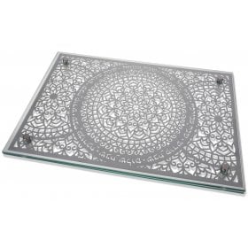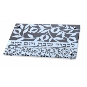Dorit Judaica Tempered Glass Challah Board with Gray Floral Design - Shabbat Shalom$46.76 -