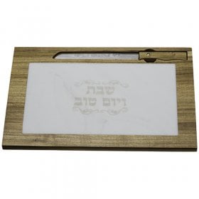 Light Brown Wood Challah Board with White Marble Plaque - Comes with Knife$109.49 -