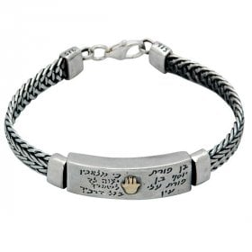Golan Men Sterling Silver Bracelet with Gold Hamsa & Ben Porat Yosef in Hebrew$151.52 -