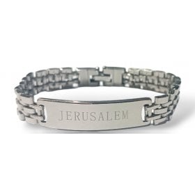 Stainless Steel Bracelet, Center Plaque with Word "JERUSALEM"$15.37 -
