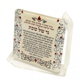 You can lay your candlesticks on a stunning Shabbat Shalom tray from Dorit Judaica and kindle the lights with her attractive lighter. After kindling the lights of Shabbat, there is a beautiful custom to recite a special prayer asking G-d to extend Divine protection and blessing to the family – near and far. We offer this as a framed decoration to stand next to the tray with the lights. Dorit Judaica has immortalized the prayer in a magnificent canvas wall decoration.