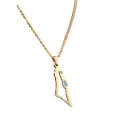 Gold Stainless Steel Pendant Necklace, Outline Map of Israel with Blue Enamel$12.06 -