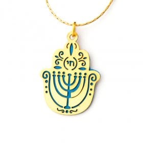 Ester Shahaf Menorah Hamsa NecklaceSize: 0.8" x 1"$35.91 -