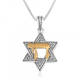 Pendant Necklace, Star of David and Chai - Textured Sterling Silver and Gold Plate$53.32 - $57.78 -