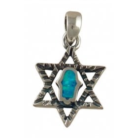 Silver and Opal Hamsa Star of David Pendant$32.08