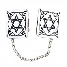 It is a moving testimony to Jewish values that even the small tallit clip has received the full attention of Judaica artists. AJudaica offers a full range of nickel-covered tallit clips in a choice of colors and designs. They are durable, long-wearing and the colors do not fade. Their low cost makes them an ideal gift if you are looking for something original, practical and decorative. You can add them as an accessory to a Bar Mitzvah set or offer them as a thoughtful host gift. They can be presented as a surprise gift to guests. Why not indulge yourself and enjoy a personal collection? You can wear your regular tallit clip on Shabbat and honor the Chagim or other special days with a different one. Of course, Rosh Hashanah and Yom Kippur will have their own distinct clips.