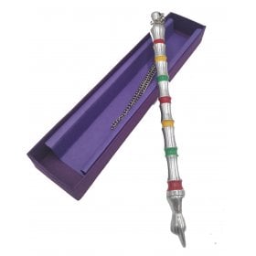 Our customers adore Yair Emanuel’s Pointers. They are bright and cheerful and bring a breath of fresh air to classic tradition. His sleek thin shapes come in a wide choice of single color or striped designs. For that special gift, we loved his wooden hand-painted Pointer resting on an exquisite display stand. If you enjoy a more ornate style, look through Yealat Chen’s Collection of Pointers decorated with colorful stones, decorative Judaica images and heavier chains. Adi Sidler offers us contemporary style Pointers designed for the boy or man who wants to be with-it without compromising tradition. For style, quality and prestige Agayof still reigns supreme. Each Pointer is a work of art. Finally, for the contemporary look, Caesarea Arts offers us a fabulous Rainbow Collection. Trendy but classic, they will inject a lively sense of color and design to the Reading of the Torah.