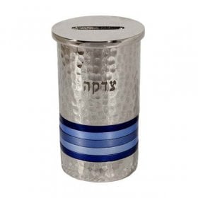 Yair Emanuel Charity Box, Cutout Pomegranates and Word Tzedakah – Silver and Blue$54.19 -